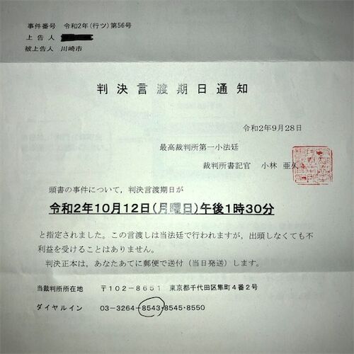 「いつになるやら」と呟いたばかりですが、突然、終わりました。 最高裁からこんな通知がきました。 三行半の棄却決定ではありませんが、判決言渡しがあるとのことです。口頭弁論を開くことなく判決ですから上告棄却であることは間違いありません。 判決に出…